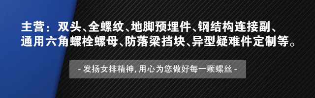 主營(yíng)高強(qiáng)度產(chǎn)品達(dá)千余種,雙頭、全螺紋、地腳預(yù)埋件、鋼結(jié)構(gòu)連接副、通用六角螺栓螺母、防落梁擋塊、異型疑難件定制等。